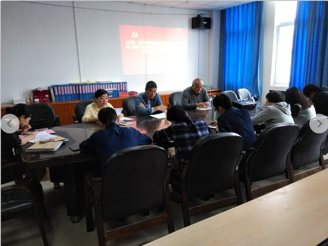 2018年10月22日的上午,我院党委组织学院领导班子、科级干部和党支部书记,“以高举习近平新时代中国特色社会主义思想深入贯彻十九大精神,立足本职,勇于担当,争取更新更大作为”为主题专题学习研讨。此次理论学习由学院党委书记王凤民主持,王凤民书记和王桂琴副书记做重点发言。