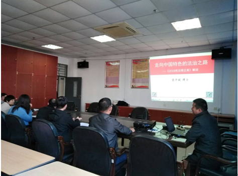2018年12月26日,正值毛泽东同志诞辰125周年,我院梁开斌副院长受邀以“走向中国特色的法治之路——《2018宪法修正案》解读”为题,在知识产权研究院党支部开讲党课。